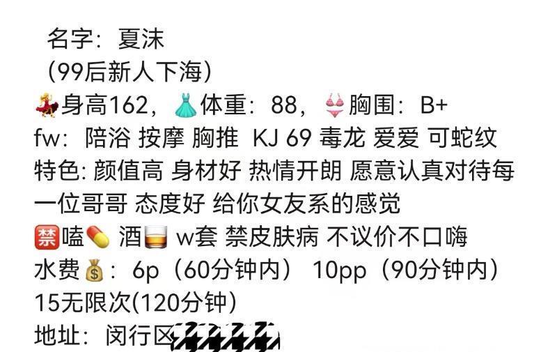 夏沫,外貌与身材均不错,年龄25,热情而且态度比较好,关键是没有陌生的感觉,一切都比较自然,全套服务中规中矩。只要不是特别过分的要求,基本都能满足不会拒绝的那种类型,而且声音比较细嫩,透着南方女子的清秀,妹子的屁股贼翘后入干起来挺爽的。