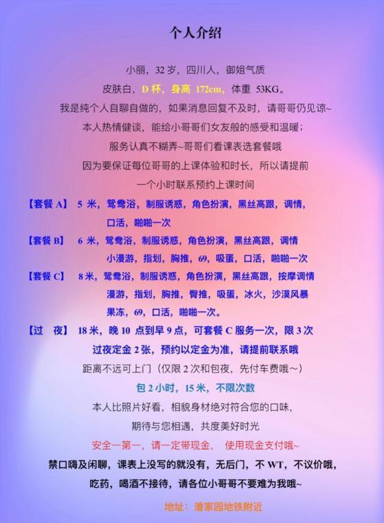 来北京出差,朋友介绍的。报着试试的心态加上妹子沟通,打车前往地方,妹子很小心谨慎。开门看到的瞬间眼睛就无法挪开了,妹子应该是做了微整形,但是那个熊那个腿真是吸睛。随即忍不住上手把玩,本狼特别喜欢丝袜高跟大长腿,妹子172的身高穿上丝袜高跟后让我爱不释手,真是物有所值。随即一顿服务下缴械投降,歇了会又来了一次,如果不是晚上有应酬真想再包个夜,一次愉快的体验期待还有下次。